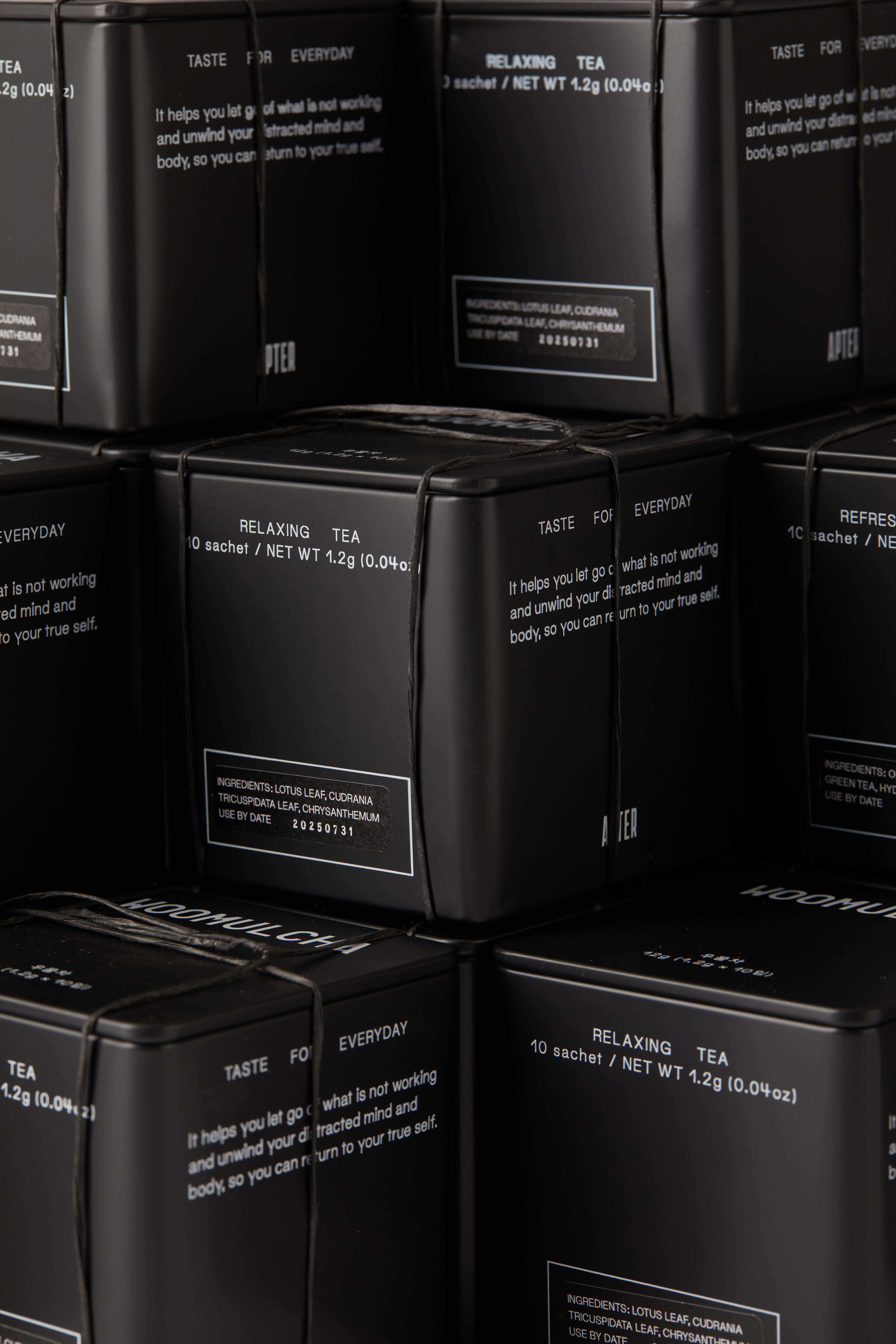 Apter shares a food and living culture that utilizes the natural beauty of Korea with a modern twist. It introduces and experiences food and drink culture using local Korean teas, liquors, and ingredients, and serves recipes with Korean aesthetics and natural sentiments. We were commissioned to design the brand identity, signage and tea package including tea names, printed materials and the copywriting for text.